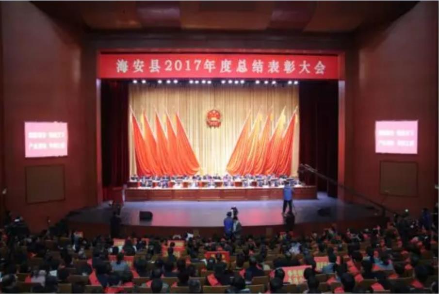 2018年2月23日,中共海安縣委員會(huì)、海安縣人民政府在海安縣文化藝術(shù)中心召開“海安縣2017年度總結(jié)表彰大會(huì)”。會(huì)上,公司被縣委、縣政府表彰為“稅收50強(qiáng)企業(yè)”、“工業(yè)百?gòu)?qiáng)企業(yè)”。公司董事長(zhǎng)梅超華同志榮膺“四星級(jí)企業(yè)家”稱號(hào)。 縣委、縣鎮(zhèn)府表彰大會(huì)現(xiàn)