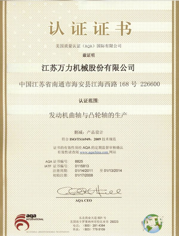Quality system certificate (Chinese 09 version) |